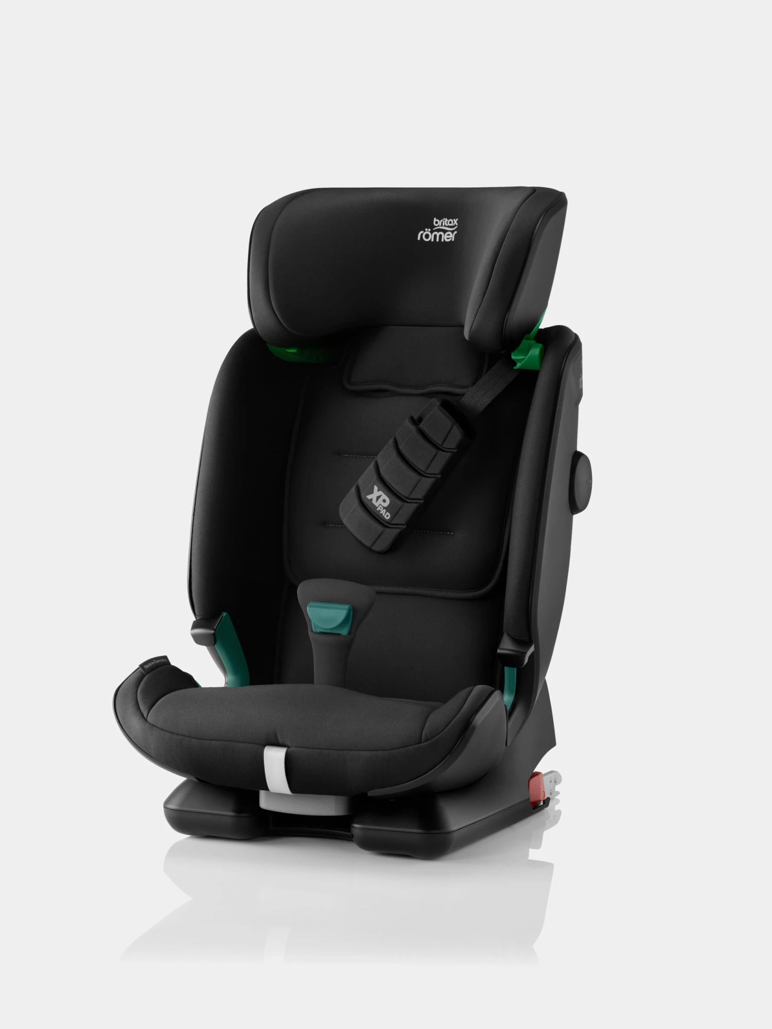 Durch den Einsatz des eigens von Römer entwickeltem stoßdämpfenden Schaumstoffkissen, dem XP-Pad,wird im Falle eines Frontalaufpralls verhindert, dass das Kinn des Kindes auf den Brustkorb auftritt. Dies schont den empfindlichen Hals-Nackenbereich und senkt die einwirkenden Kräfte um bis zu 30%.