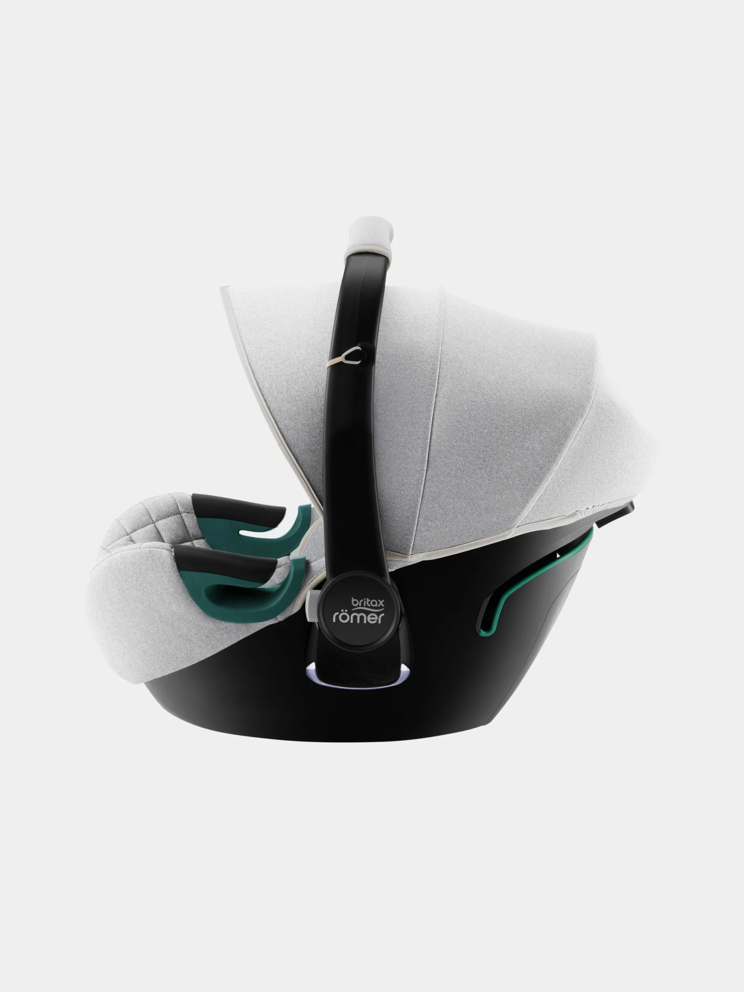 Der Tragebügel ist ebenfalls verstellbar, wenn man das Kind in die Babyschale legt.